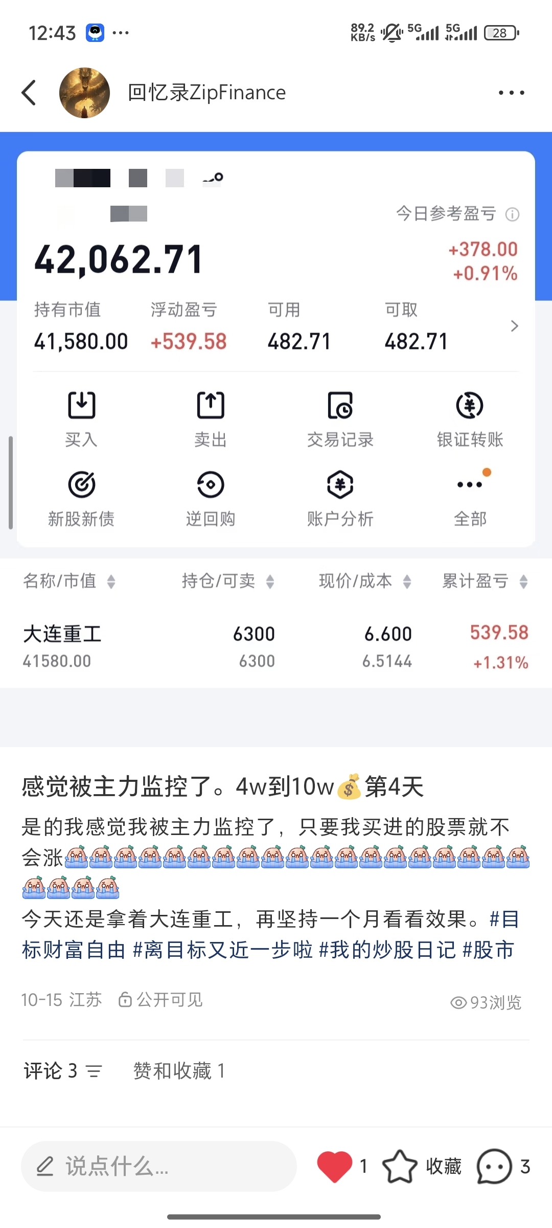 可以同步看我的红薯账号,(回忆录zipFinance)分享一些心得和交易记录,互