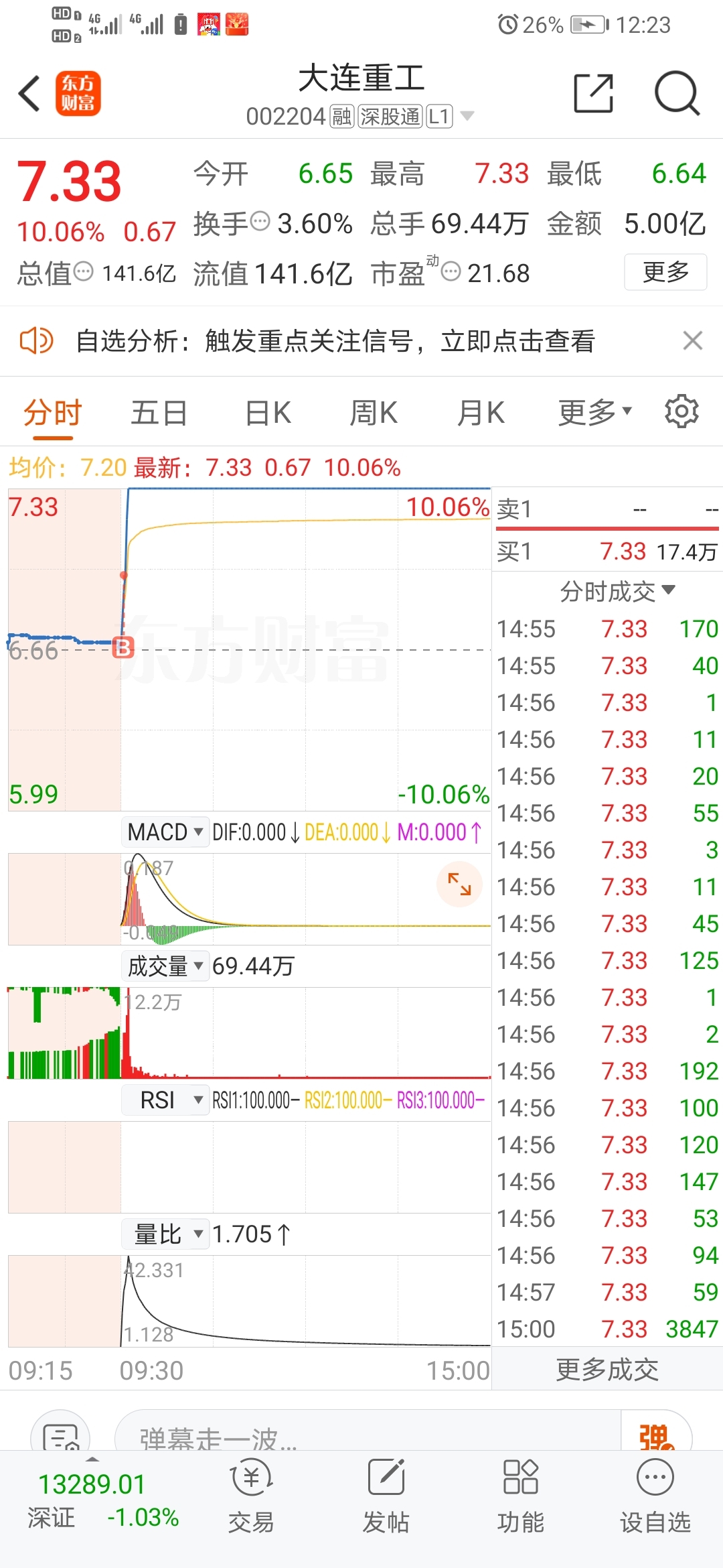 $大连重工(SZ002204)$ 大连重工,飚得太猛了。
