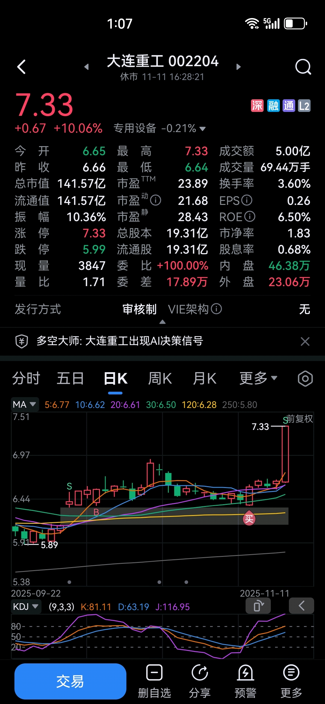 大连重工看好就坚定持有