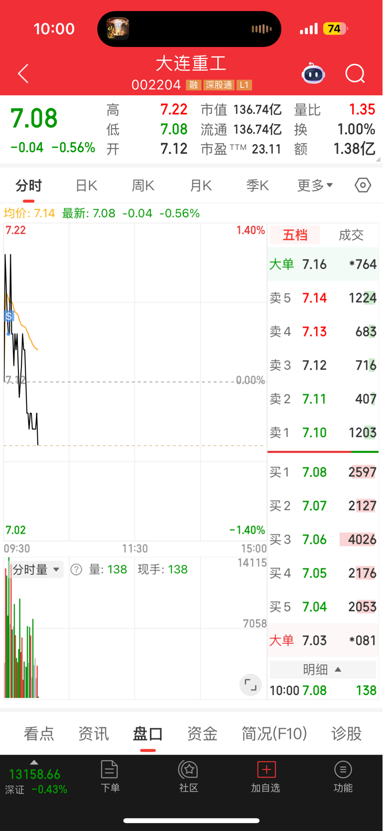 $大连重工(SZ002204)$ 保本走了,就知道巴里都是说涨停的就知道不行了