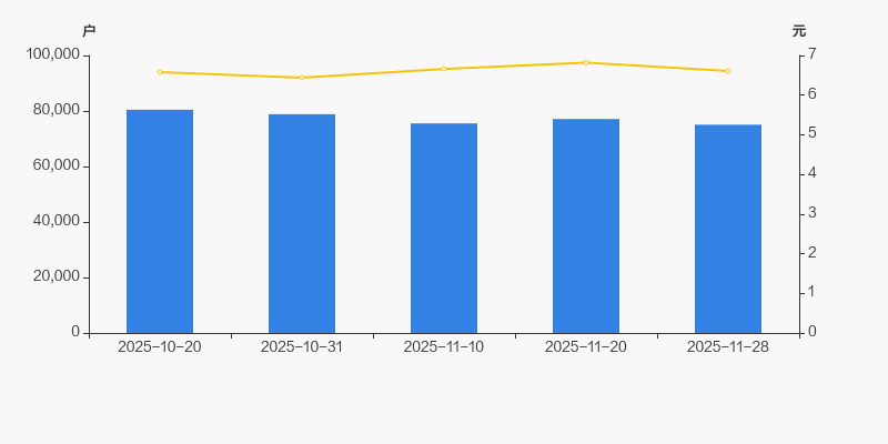 2025年10月20日至今,公司股东户数有所下降,区间跌幅为6.70%。2025年10月20日至2025年11月28日区间股价上涨0.46%。