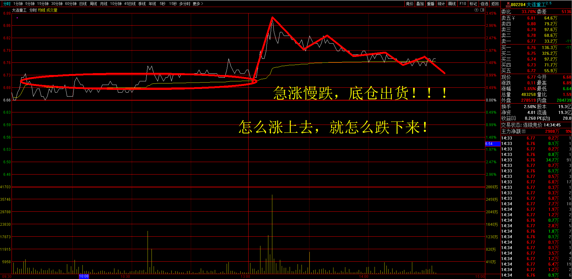 又是急拉慢跌,低位筹码在出货!怎么涨上去,就怎么跌下来!