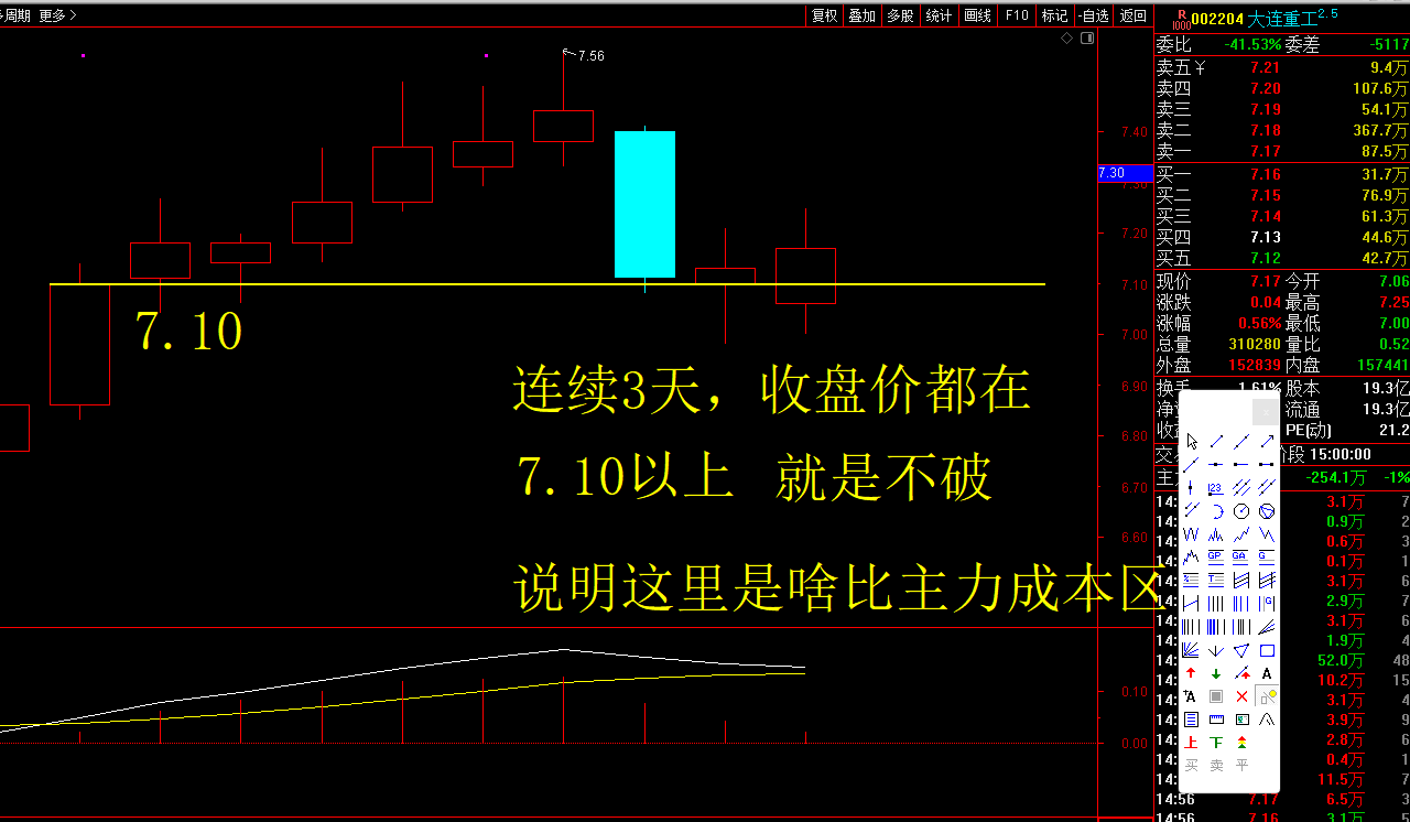 连续3天,收盘价都在7.10之上!这就是啥比主力的成本区!让啥比主力给劳资抬轿!