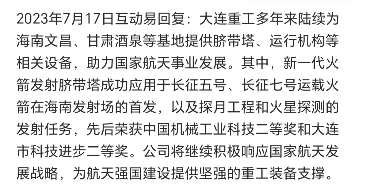 $大连重工(SZ002204)$ 也有海南,跟商业航天概念