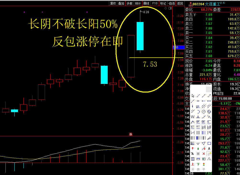 长阴不破涨停50%的7.53,反包涨停在即!继续买买买买!