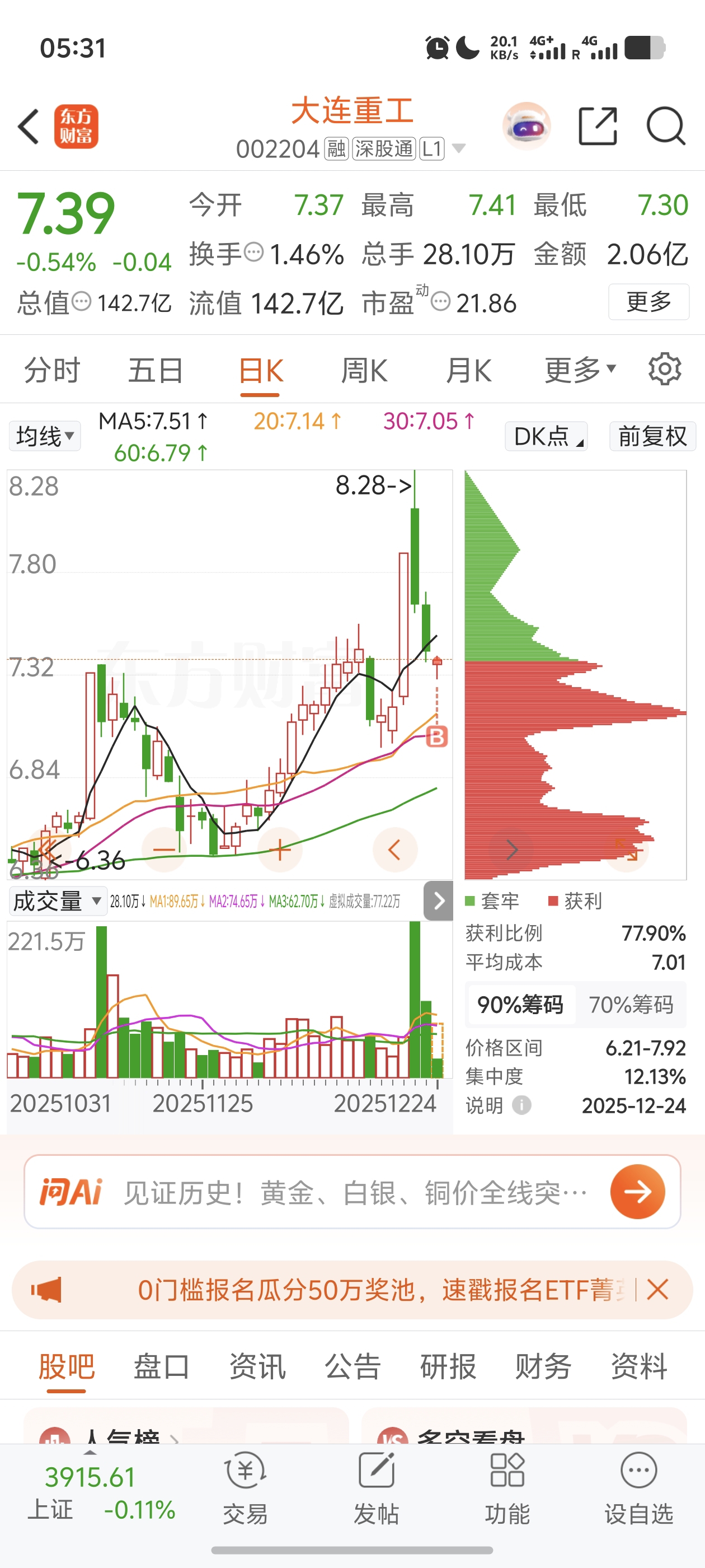 $大连重工(SZ002204)$ 我进来了