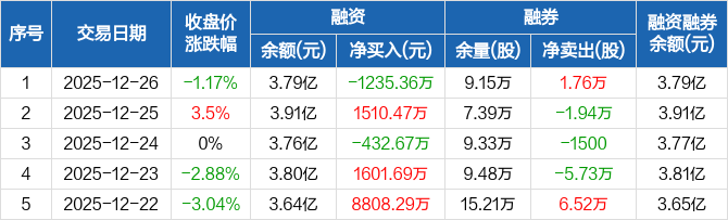 大连重工:融资净偿还1235.36万元,融资余额3.79亿元(12-26)