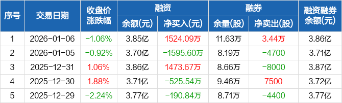 大连重工:融资净买入1524.09万元,融资余额3.85亿元(01-06)