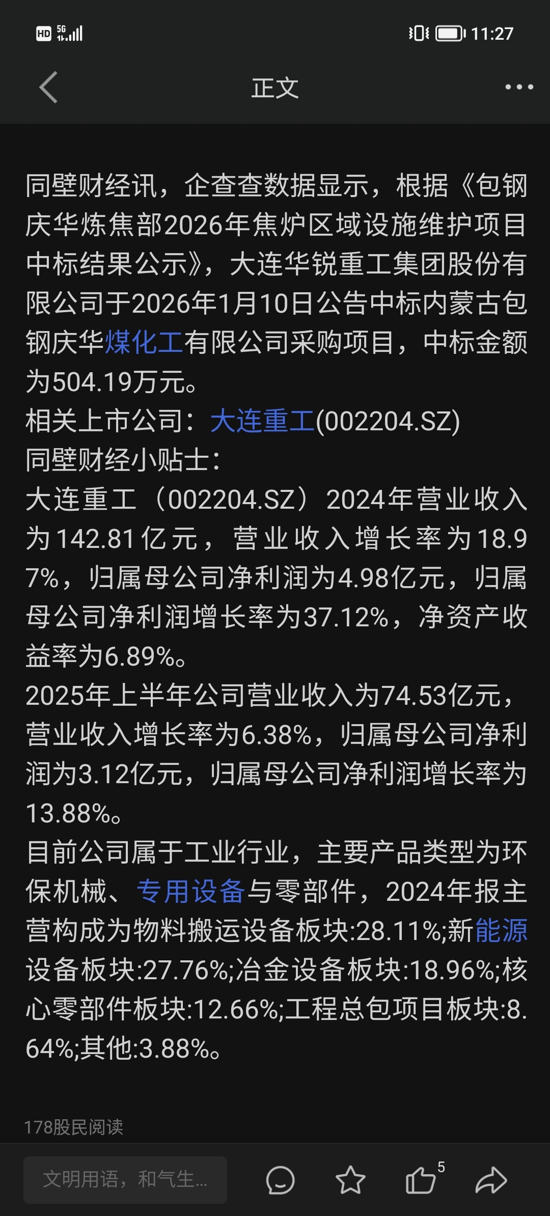 $大连重工(SZ002204)$