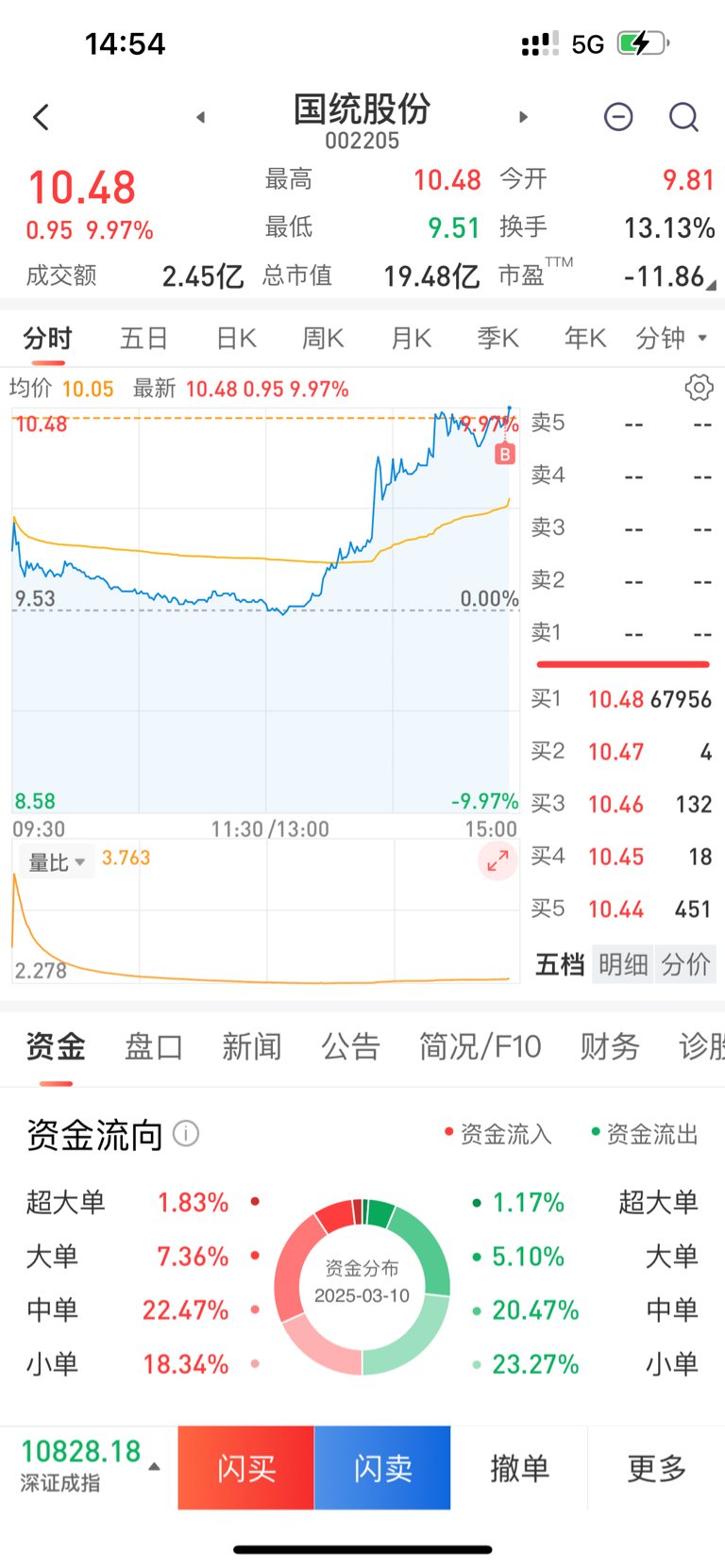 $国统股份(SZ002205)$ 生死由命,富贵靠打板...
