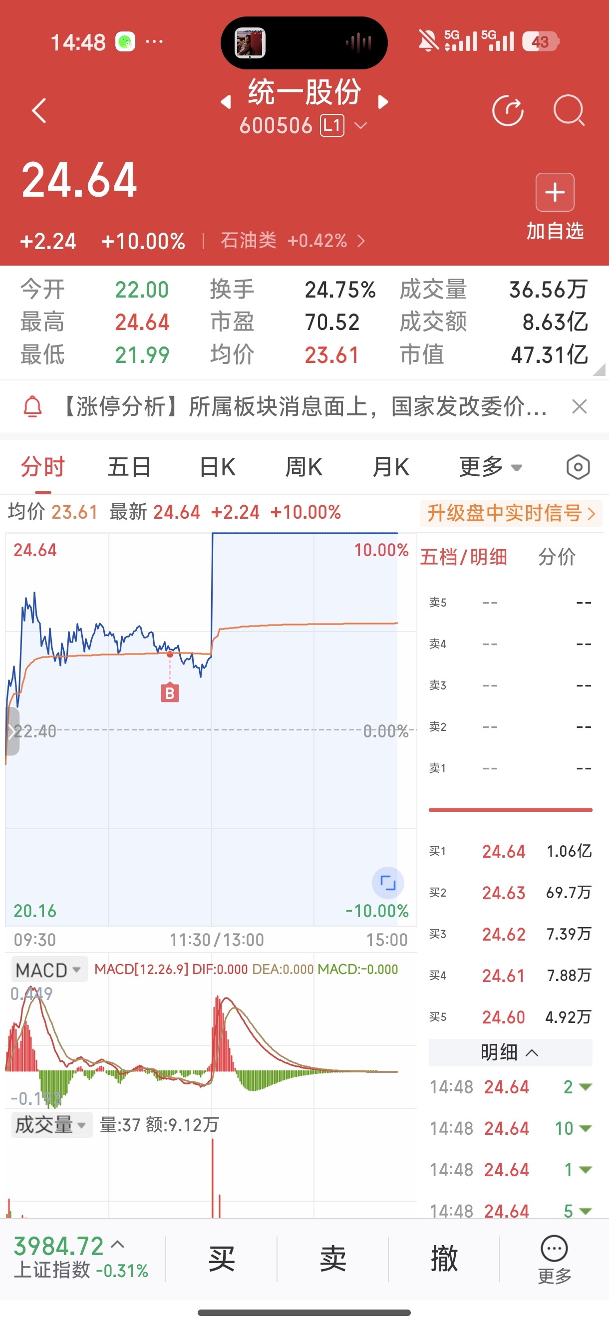 $国统股份(SZ002205)$ 龙头已经见分晓。。“统一”为新老大,老二明天开始回落