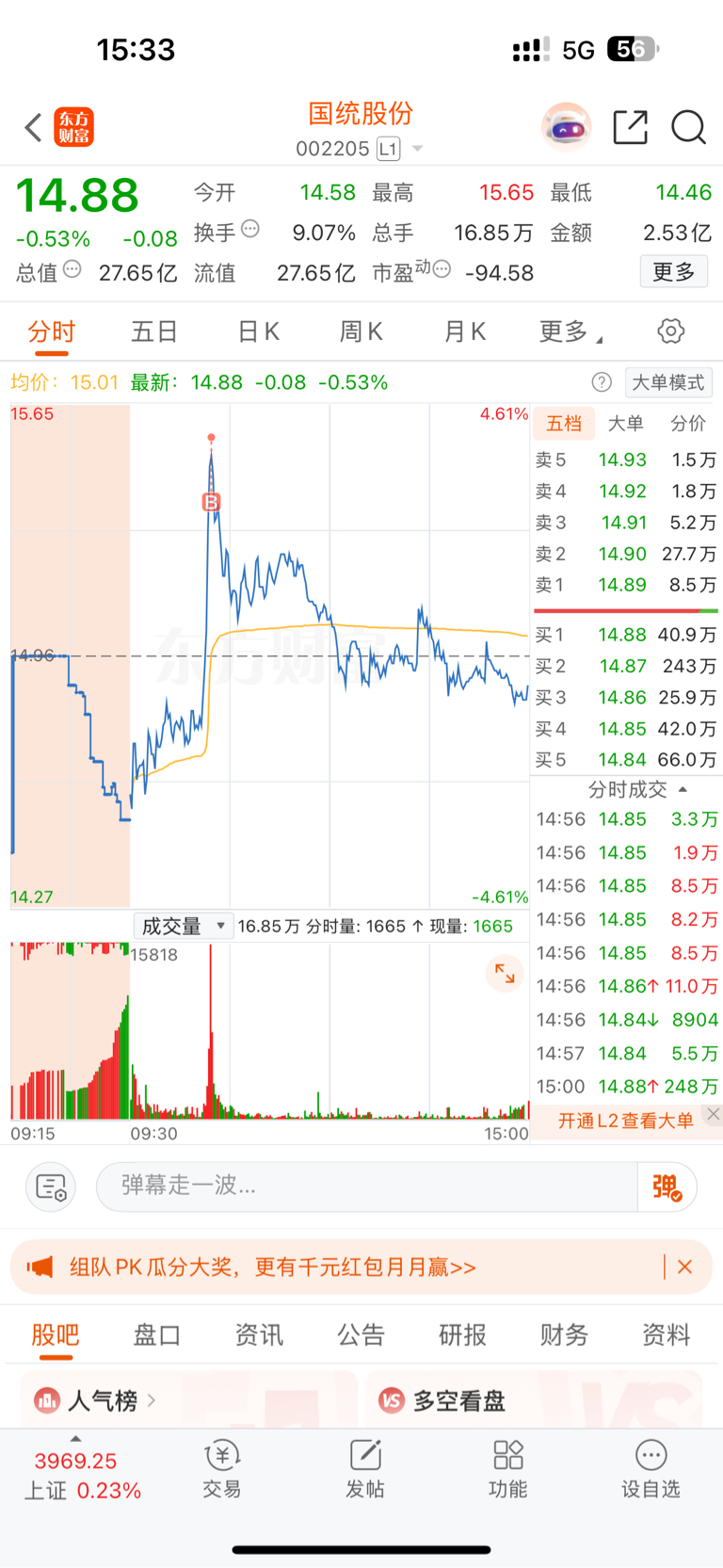 $国统股份(SZ002205)$ 啦啦啦,我是追高的小能家,明天又可以割肉啦