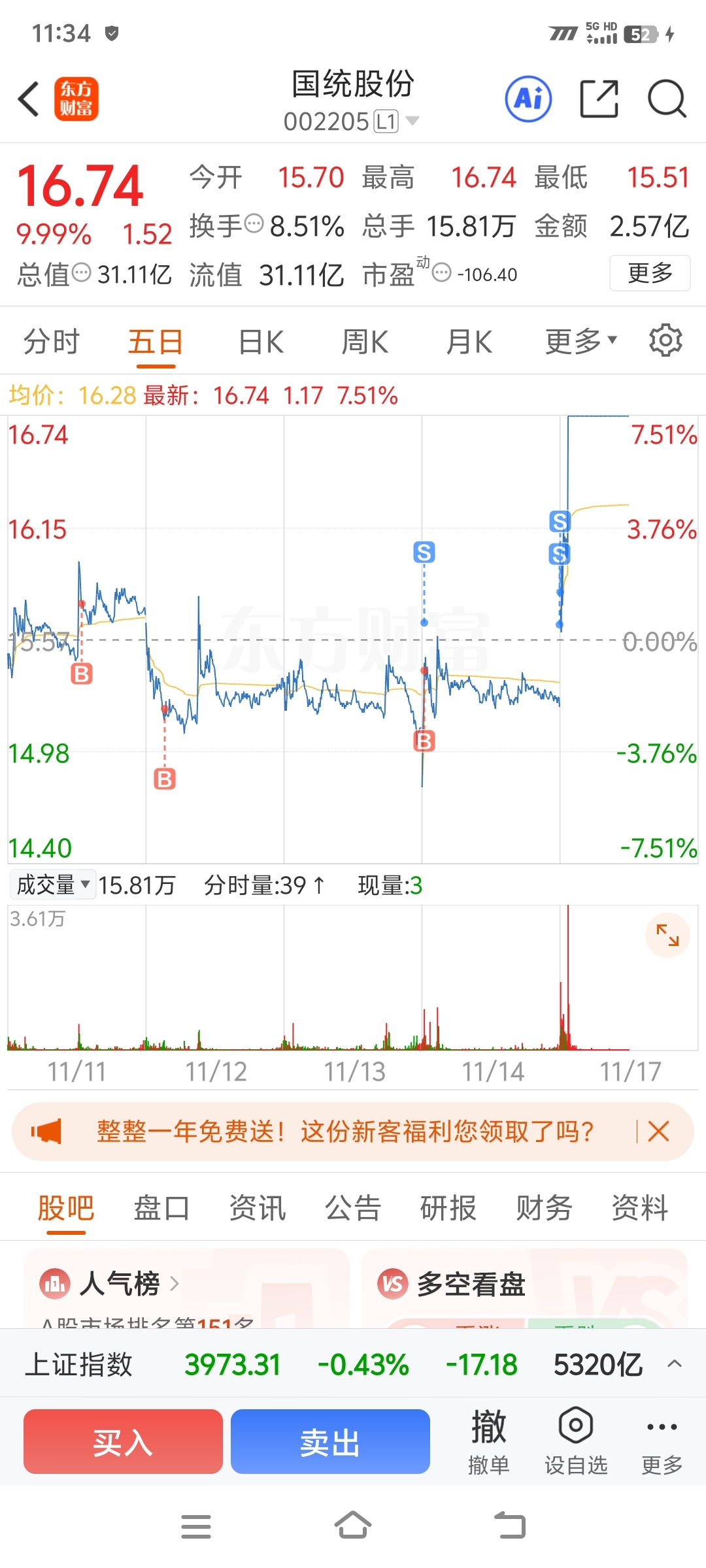 $国统股份(SZ002205)$ 回本就卖了 大概率连板 恭喜里面的人吃肉