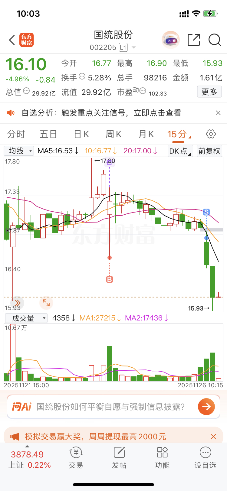 $国统股份(SZ002205)$ 慢一秒就被埋了