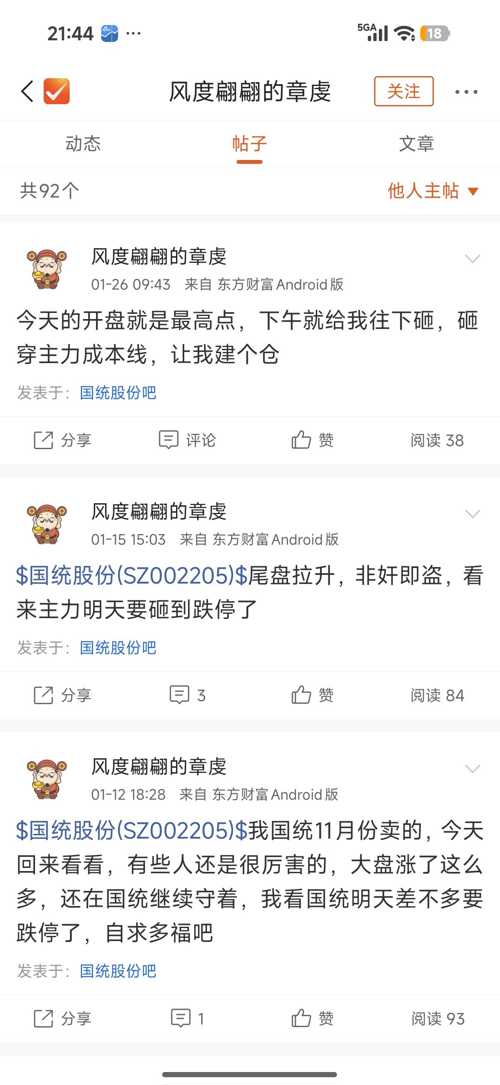 温馨提示: 1.根据《证券法》规定,禁止编造、传播虚假信息或者误导性信息,扰乱证券市场;2.用户在本社区发表的所有资料、言论等仅代表个人观点,与本网站立场无关,不对您构成任何投资建议。用户应基于自己的独立判断,自行决定证券投资并承担相应风险。《东方财富社区管理规定》