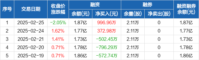 海利得:融资净买入996.96万元,融资余额1.87亿元(02-25)