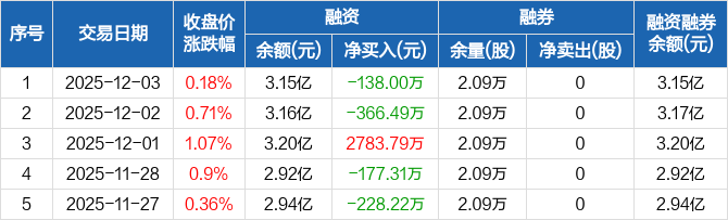 海利得:融资净偿还138万元,融资余额3.15亿元(12-03)