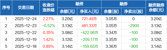海利得:融资净买入721.49万元,融资余额3.2亿元(12-24)
