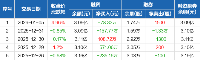 海利得:融资净偿还78.33万元,融资余额3.09亿元(01-05)