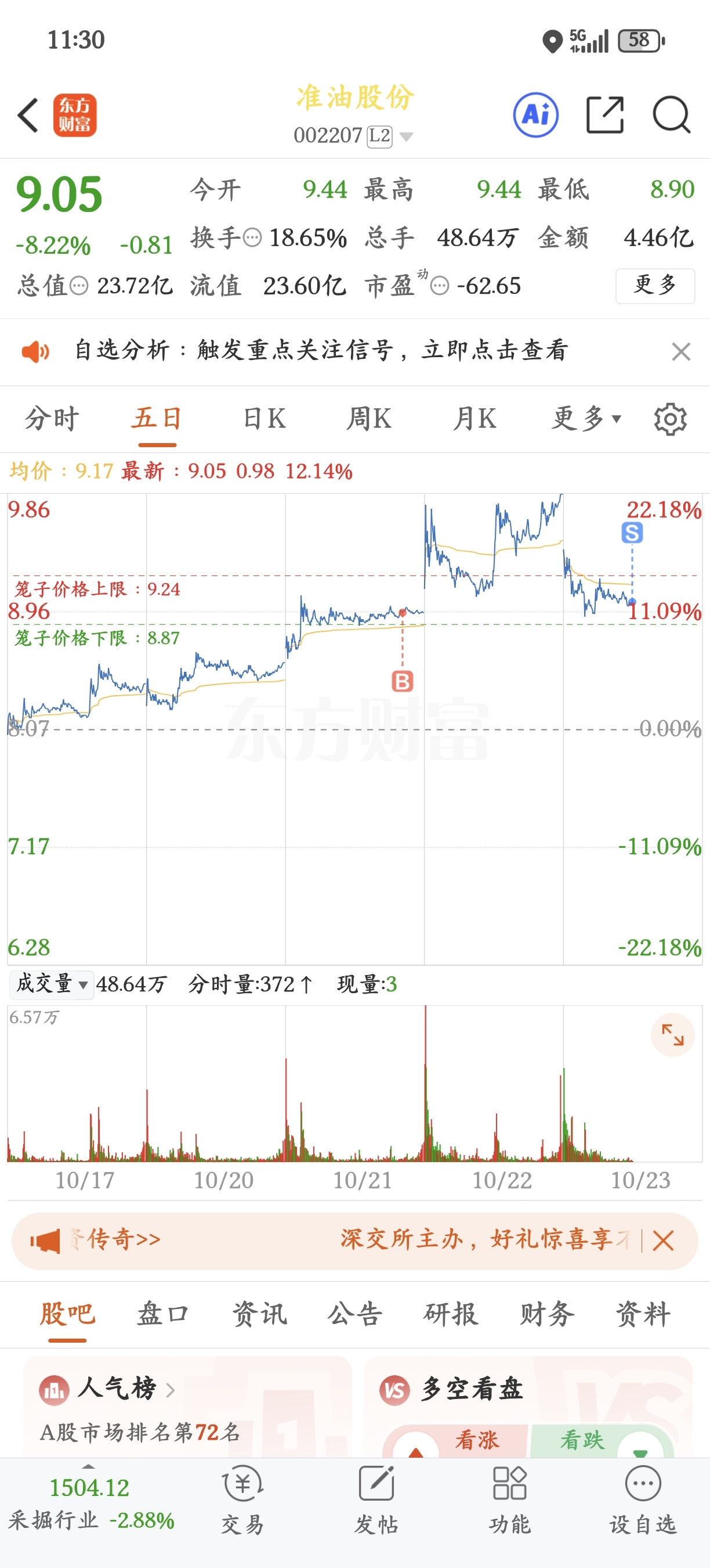 $准油股份(SZ002207)$ 还给你,赚一杯奶茶就够了