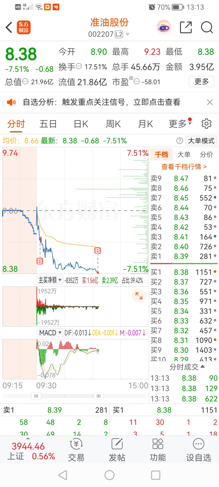 $准油股份(SZ002207)$ 8.75半仓,8.39满仓,怎么办?昨天晚上看到石油大涨才进来的