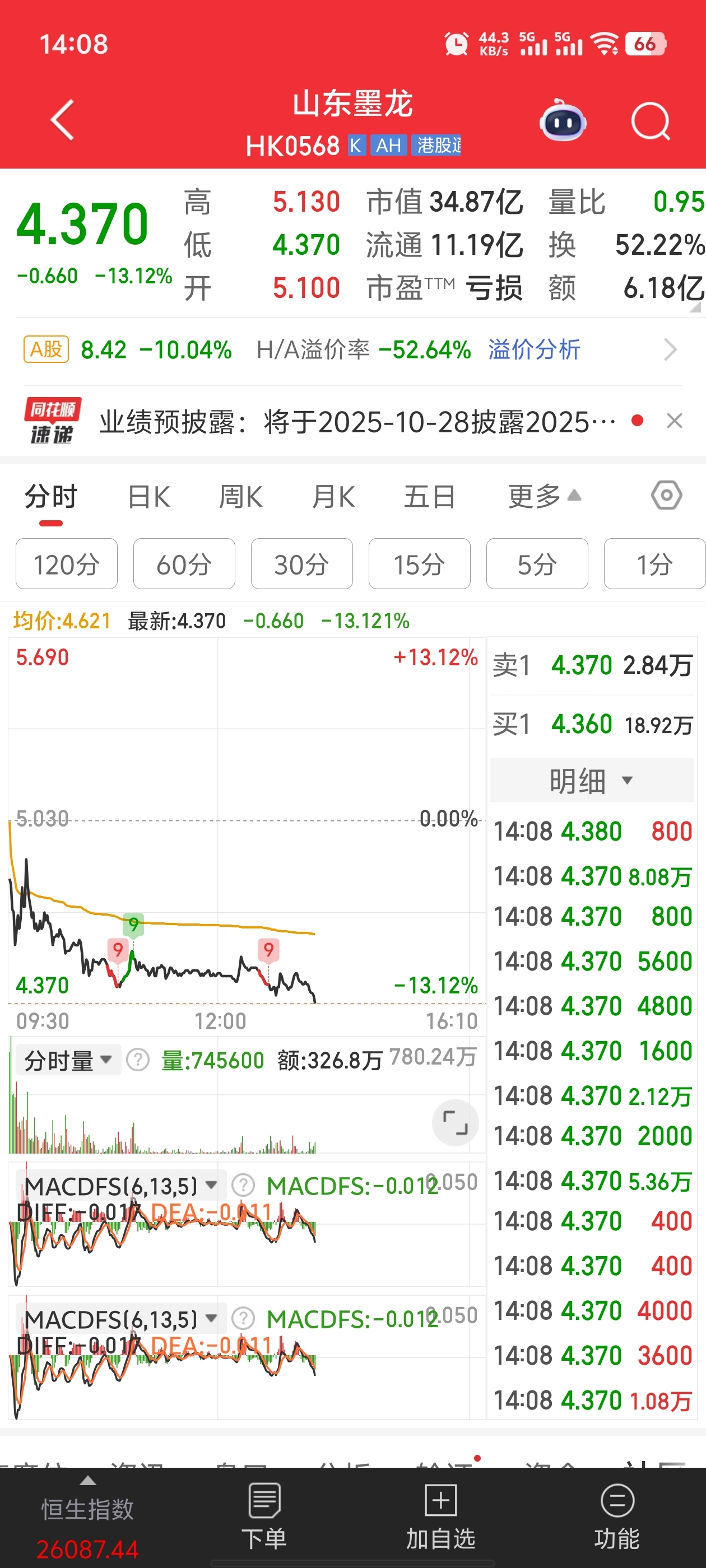 $准油股份(SZ002207)$ 山东墨龙港股快跌20个点了