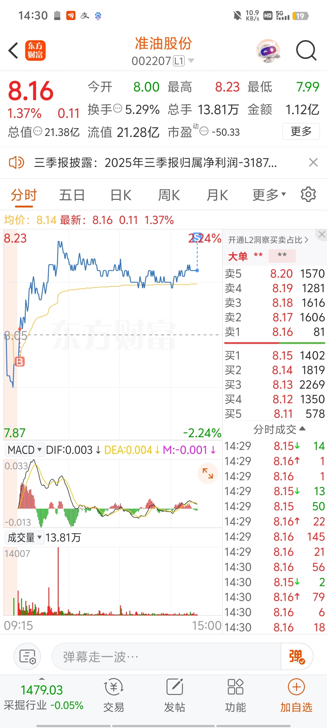 $准油股份(SZ002207)$ 今天受够了,本来相等神奇2点半的,看不到希望了