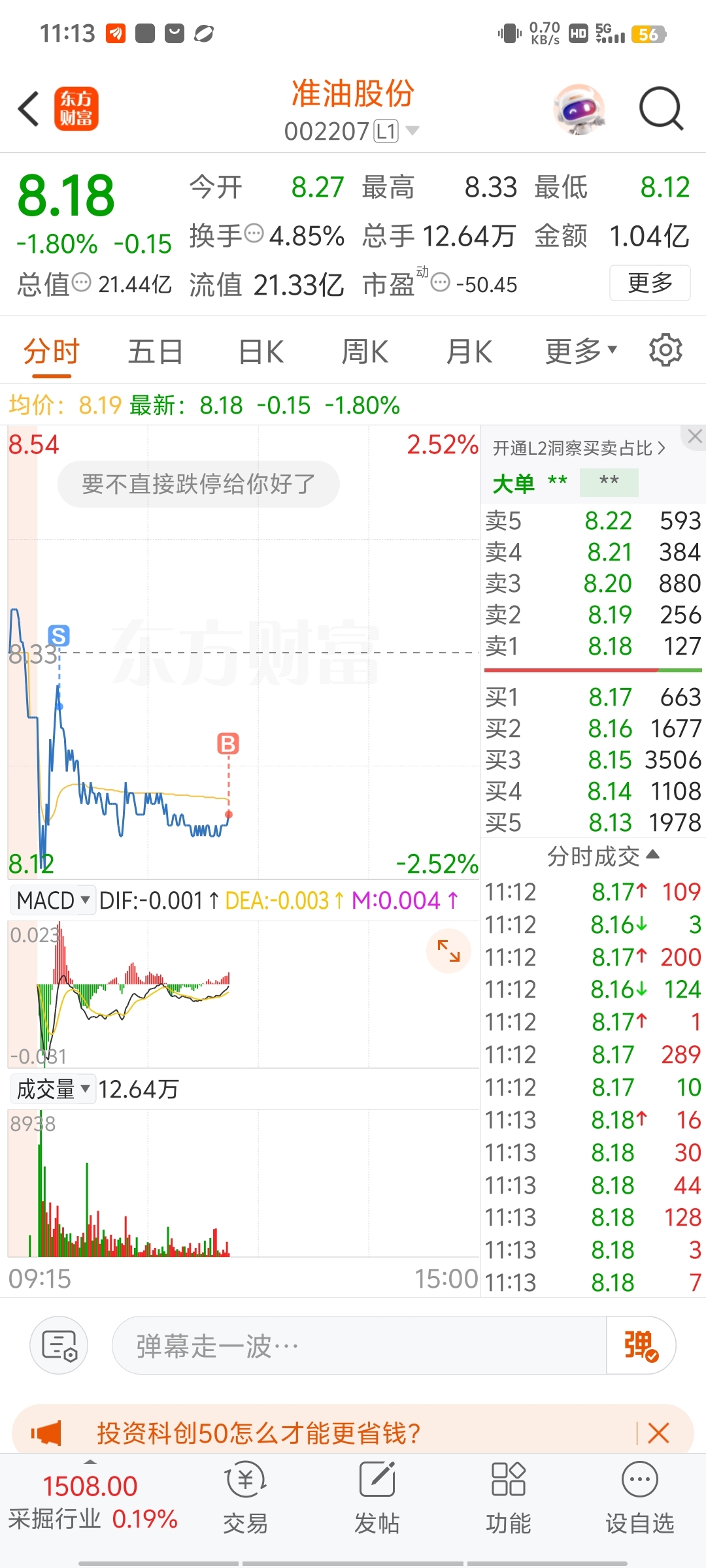 $准油股份(SZ002207)$ 8.08等不着了,那就干吧,8.18主力我来了,接着砸吧