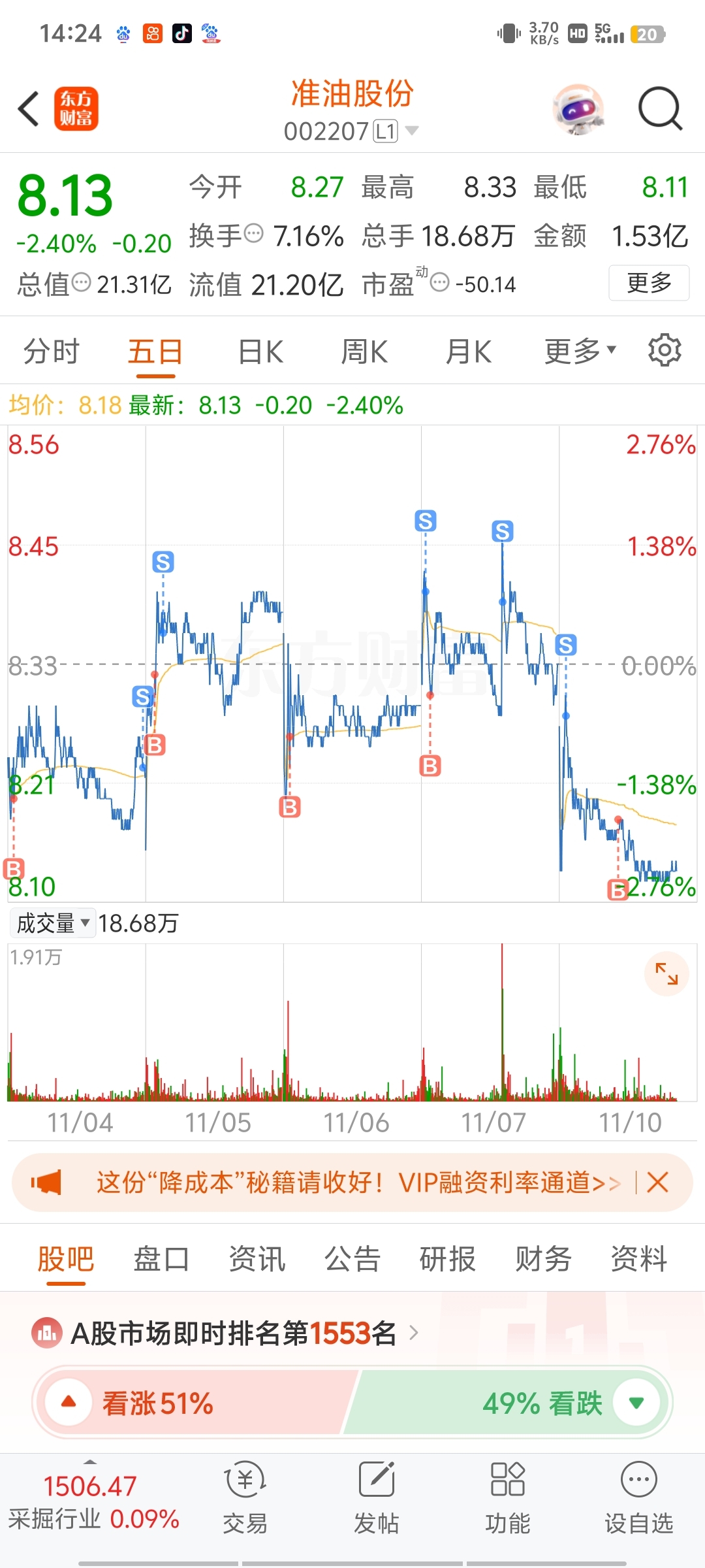 $准油股份(SZ002207)$ 我每次买卖都在贴吧说了,有时候也带图了,你们要是进,得找好支撑位,破了当天就不做T了,虽然趋势不好但是我还想玩玩,因为筹码峰,会看的去看看筹码峰,我发表不是刷存在感,只是我自己的一种记录,股市涨跌不是我说了算,祝大家都能抓涨停