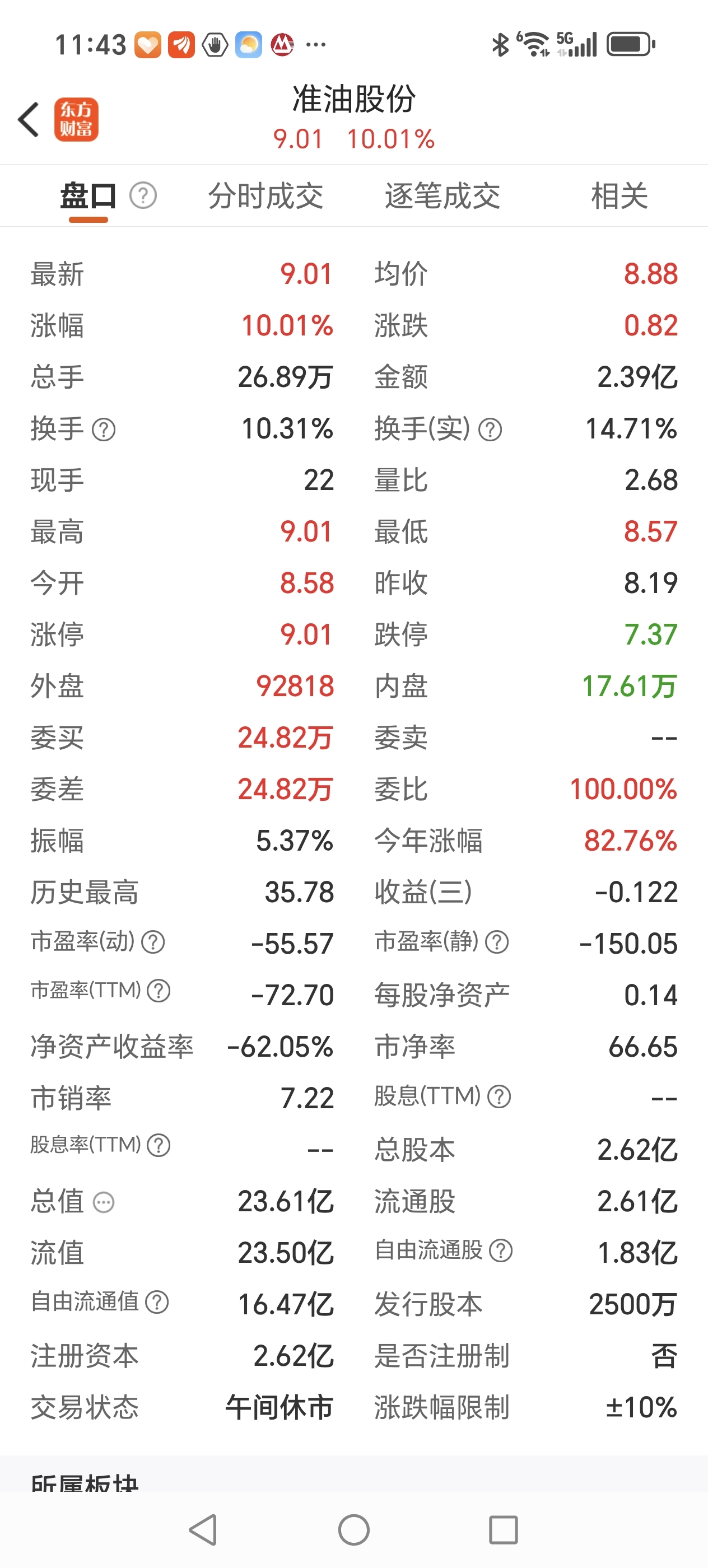 $准油股份(SZ002207)$ 每股净资产0.14元。三季报亏损每股0.122元。这个股票涨停!!如果有一个大资金走出,股价连续跌停打不开。会Ts吗??