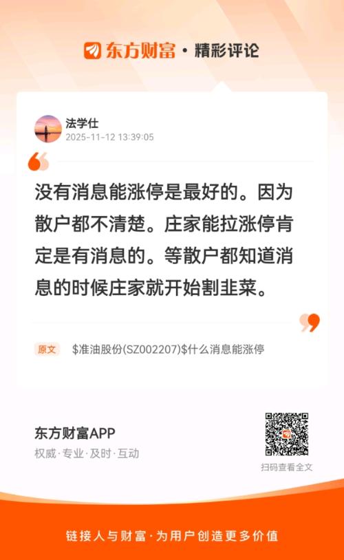 //@法学仕 :没有消息能涨停是最好的。因为散户都不清楚。庄家能拉涨停肯定是有消息的。等散户都知道消息的时候庄家就开始割韭菜。