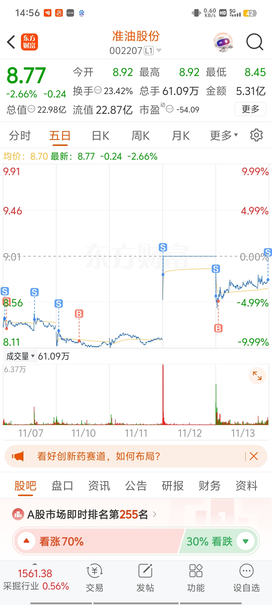 $准油股份(SZ002207)$ 别给我机会,给我机会我就T
