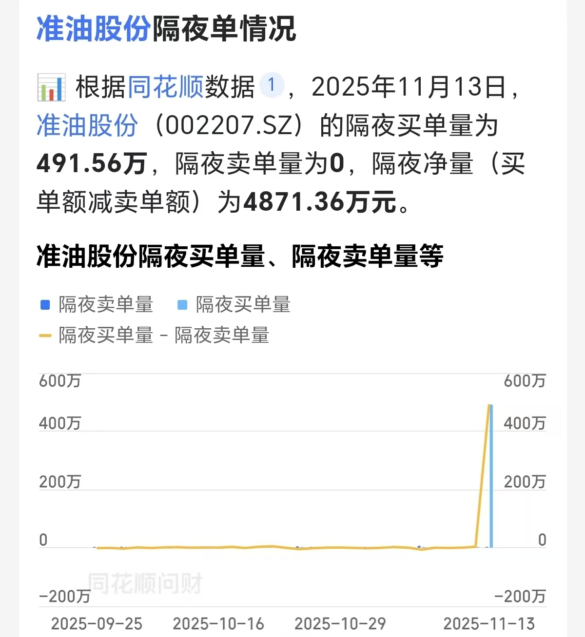 $准油股份(SZ002207)$ 去查了下,真的有4800多万的隔夜买单