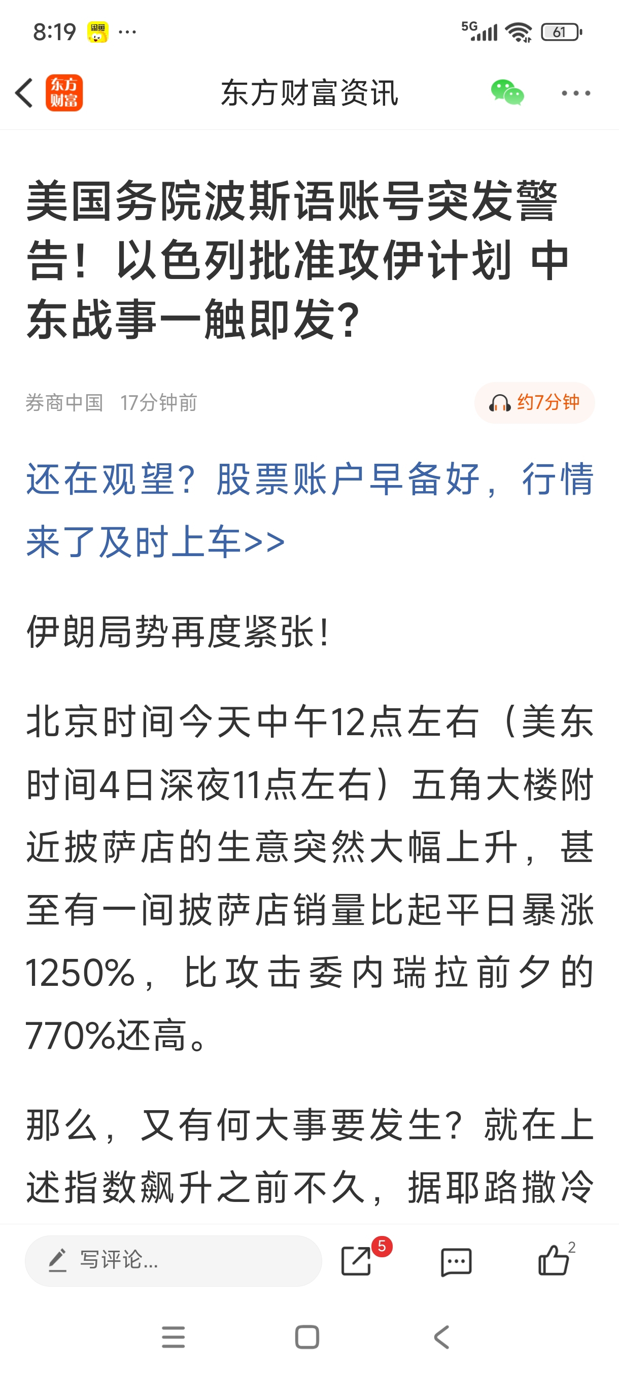 $准油股份(SZ002207)$ 中东又紧张了,原油又开始涨了