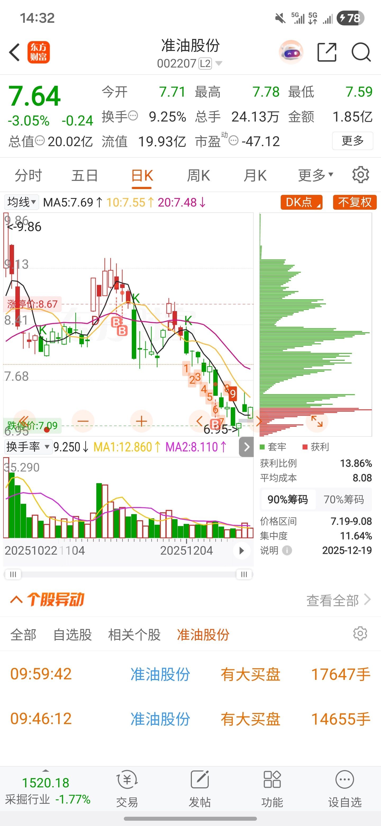 $准油股份(SZ002207)$ 我在最高点买的,补了一次,就看你什么时候回前高了!