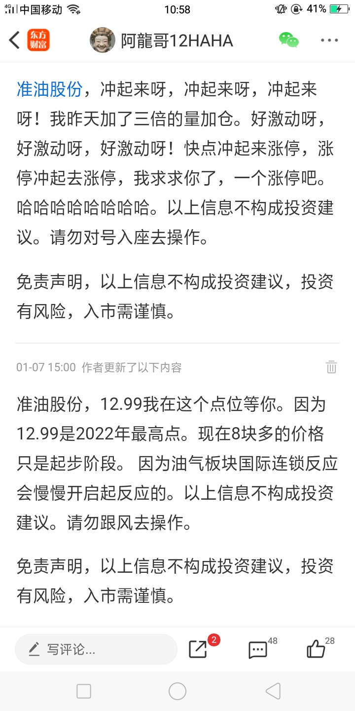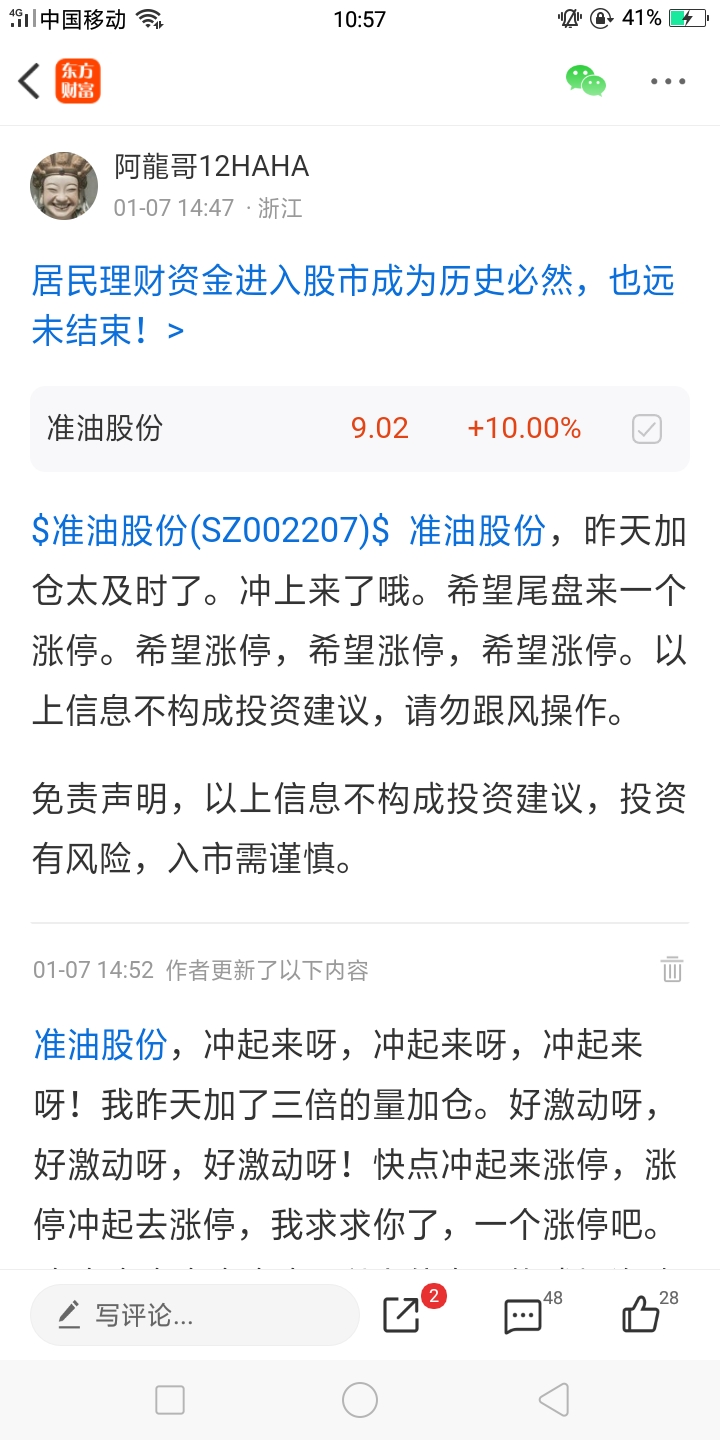 $准油股份(SZ002207)$ 准油股份,刚才涨停了。继续朝着我的目标前行。油气资源某国被控制了。那么会开启国际市场连锁反应。连锁反应一点一点国际市场要呈现起来的。我是不急,继续潜伏。 以上信息不构成投资建议,请勿跟风操作。