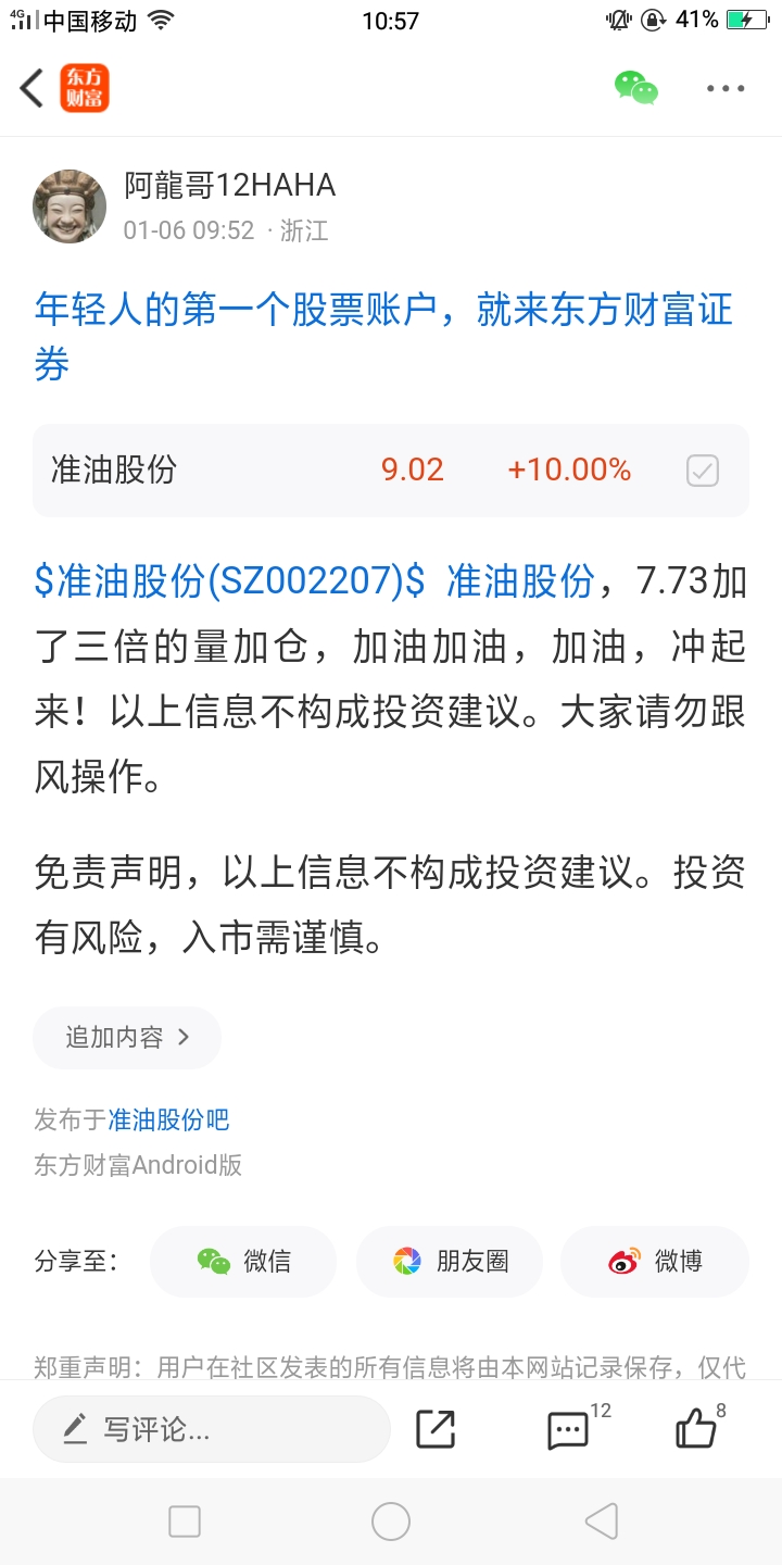 温馨提示: 1.根据《证券法》规定,禁止编造、传播虚假信息或者误导性信息,扰乱证券市场;2.用户在本社区发表的所有资料、言论等仅代表个人观点,与本网站立场无关,不对您构成任何投资建议。用户应基于自己的独立判断,自行决定证券投资并承担相应风险。《东方财富社区管理规定》