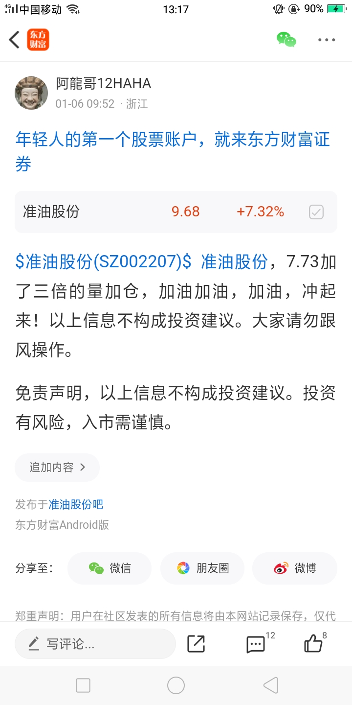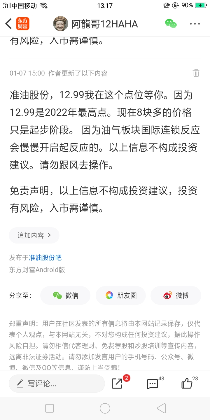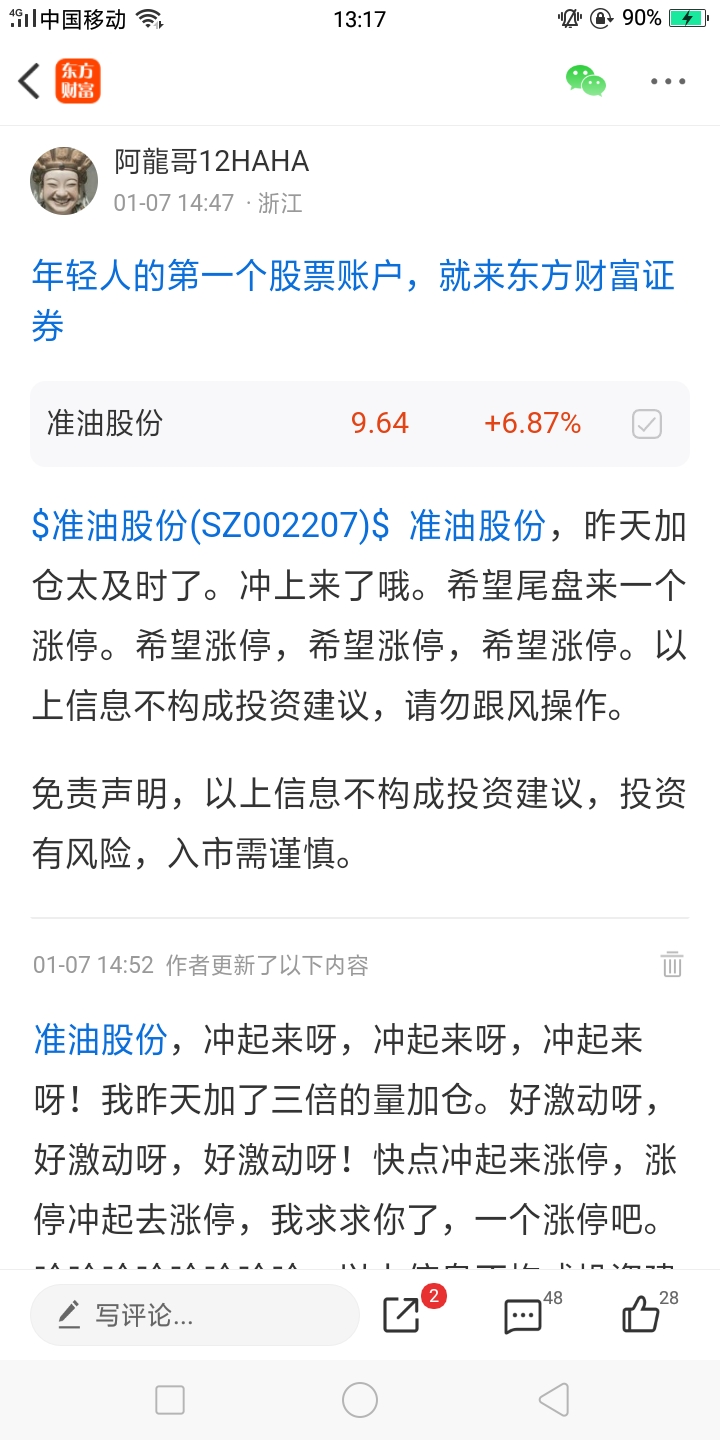 温馨提示: 1.根据《证券法》规定,禁止编造、传播虚假信息或者误导性信息,扰乱证券市场;2.用户在本社区发表的所有资料、言论等仅代表个人观点,与本网站立场无关,不对您构成任何投资建议。用户应基于自己的独立判断,自行决定证券投资并承担相应风险。《东方财富社区管理规定》