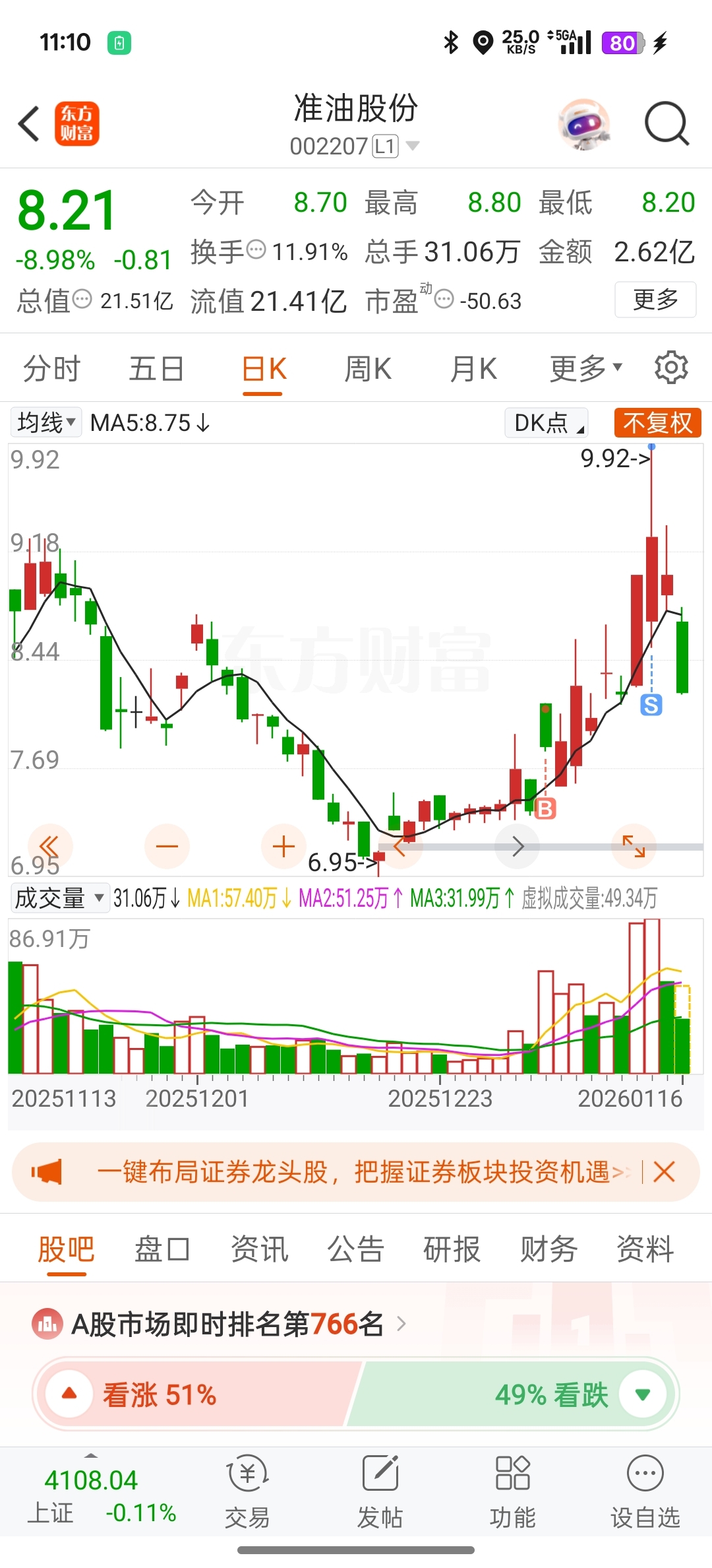 $准油股份(SZ002207)$ 请叫我逃顶小能手