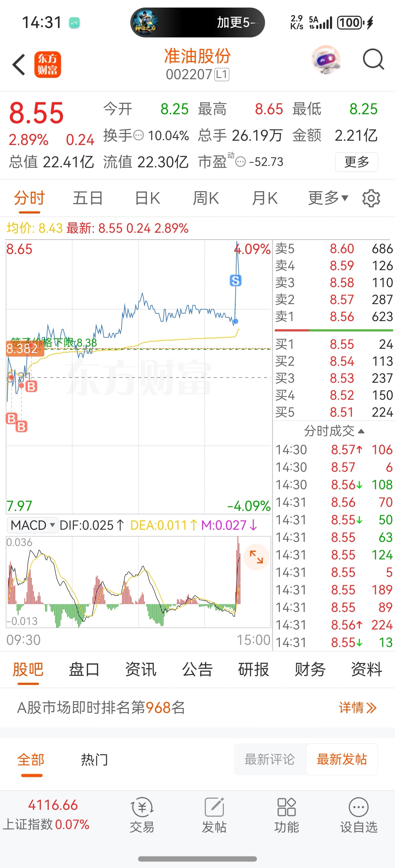 $准油股份(SZ002207)$ 靠,监控我这三瓜两枣吗