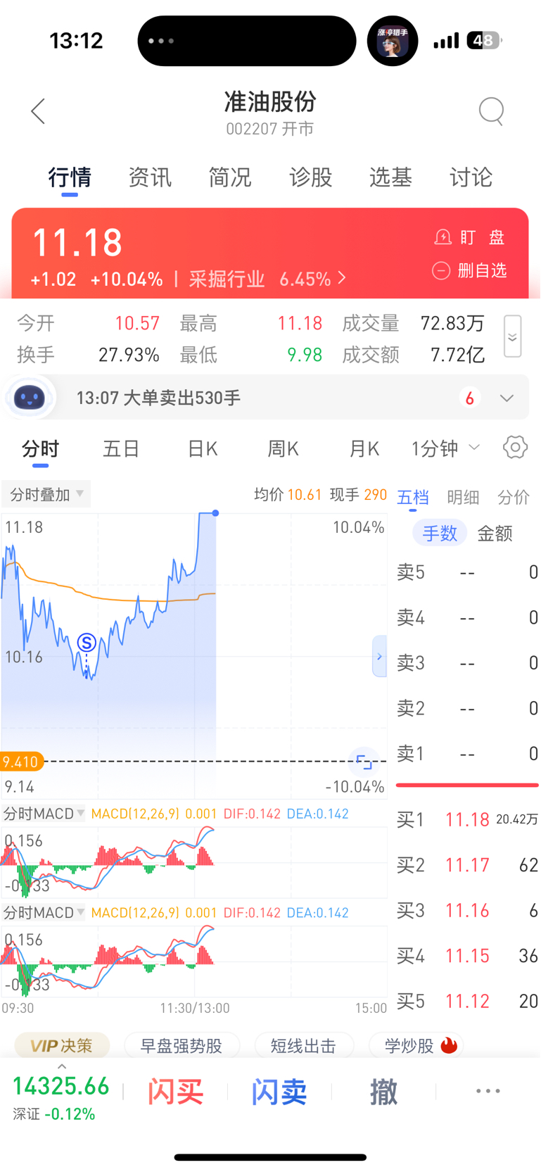 $准油股份(SZ002207)$ 洗盘洗的牛