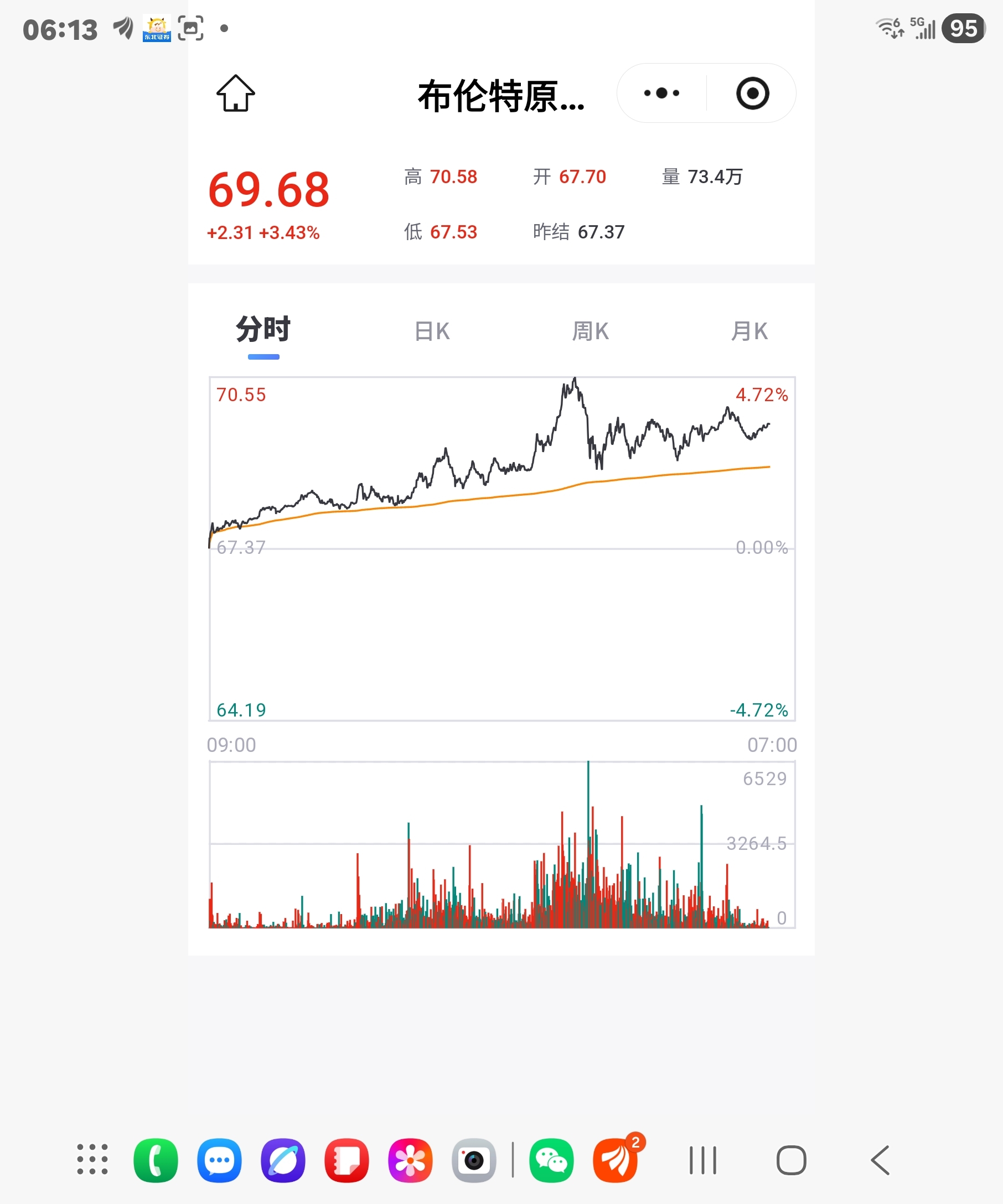 $准油股份(SZ002207)$ 布伦特原油主连继续大涨