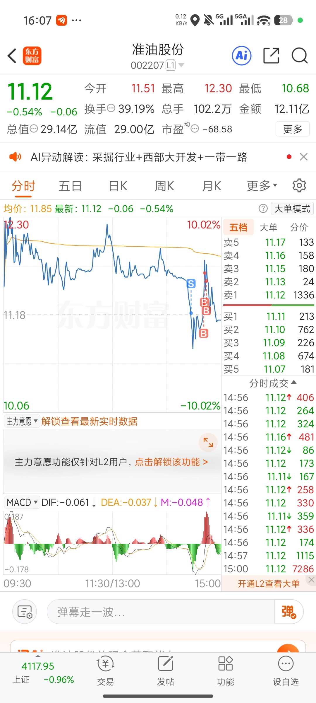 $准油股份(SZ002207)$ 这波操作很难称之为人类