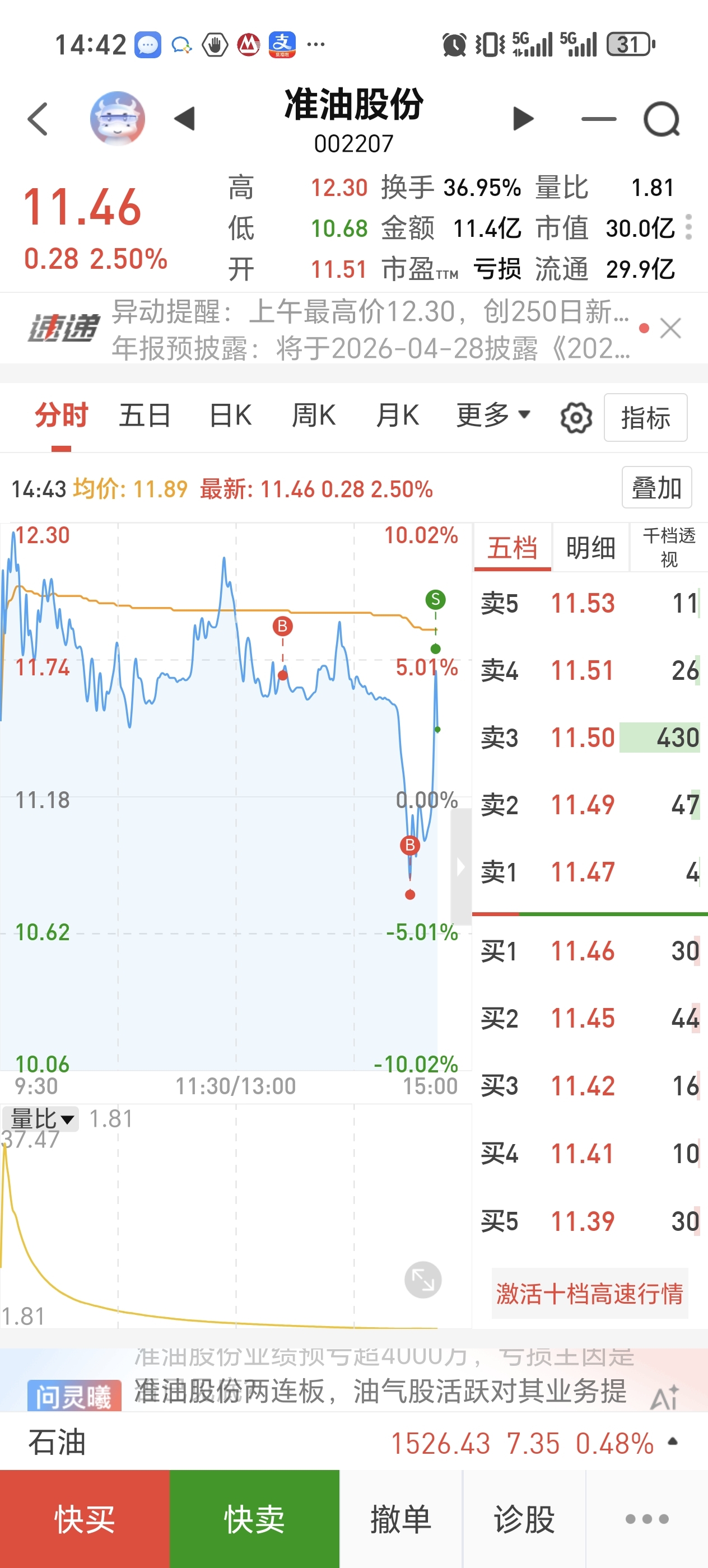 $准油股份(SZ002207)$ 玩了一把大的,差点把自己玩死