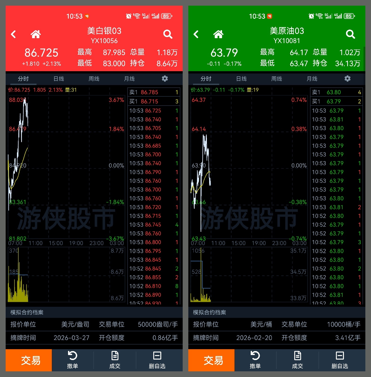 目前,白银与原油之间的涨跌走势是相反的,可做参考。