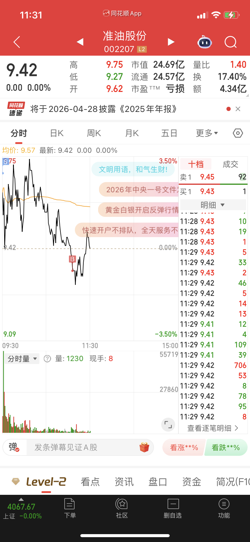$准油股份(SZ002207)$ 做了个T不知道是对还是错?希望明天你加油啊!