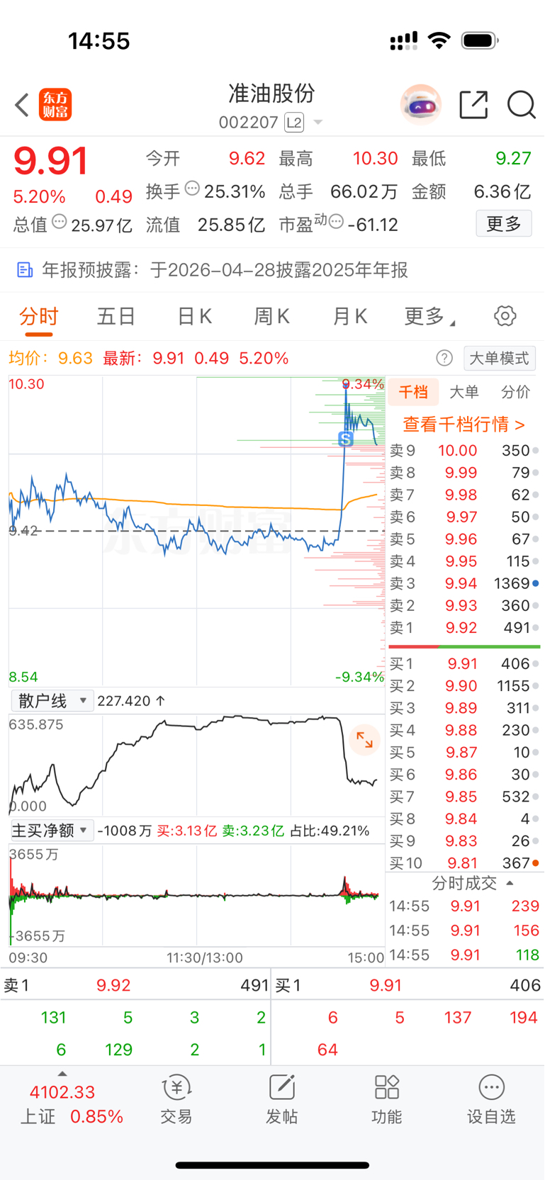 $准油股份(SZ002207)$ 感谢自己认了那么久,没有卖飞,不然拍断腿了