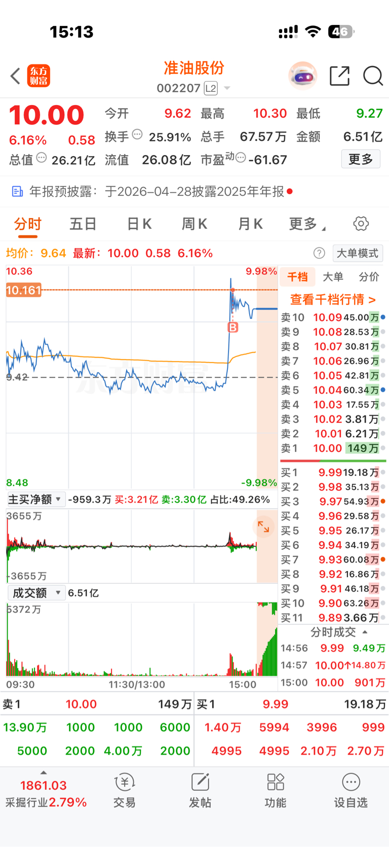 $准油股份(SZ002207)$ 不好意思,被我买崩了