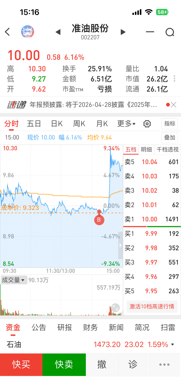 $准油股份(SZ002207)$ 我胡汉三又来了老板们坐好