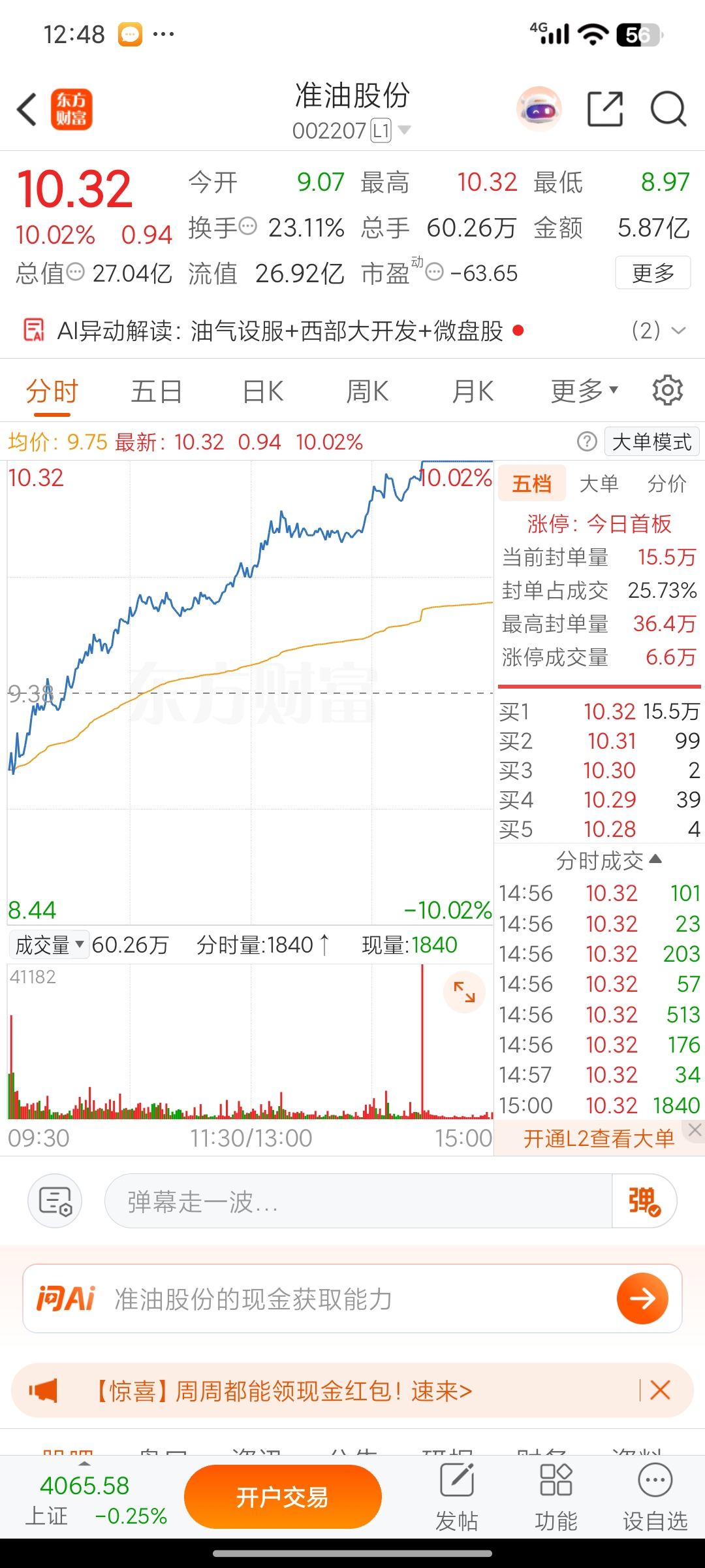 $准油股份(SZ002207)$ 我很少见过一个20多亿市值的票这样子拉涨停的,绝对是边拉边洗,这种走势只有几百万上千万市值的票能走的出来